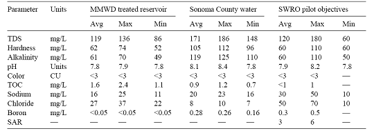 表2. 美國加州市政水中心海水淡化系統(tǒng)的后處理水質目標