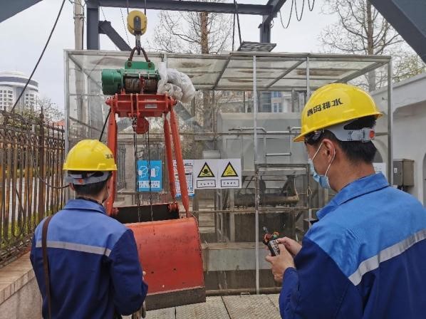 開展泵站集中清池拿砂工作,結(jié)合疫情防控工作要求,合理研究制定清池方案,嚴(yán)格落實(shí)疫情防控消殺,聚焦科技賦能,取消人工下井清池作業(yè),充分利用抓斗車、吸污車、移動(dòng)砂泵、機(jī)械抓斗等機(jī)械設(shè)備,有效避免了人員進(jìn)行有限空間作業(yè)帶來的安全風(fēng)險(xiǎn),提高了泵站清池效率。截至目前,已完成滄臺(tái)路泵站、杭州支路泵站等9座泵站的清池拿砂工作,有效保障泵站設(shè)施良好運(yùn)行。